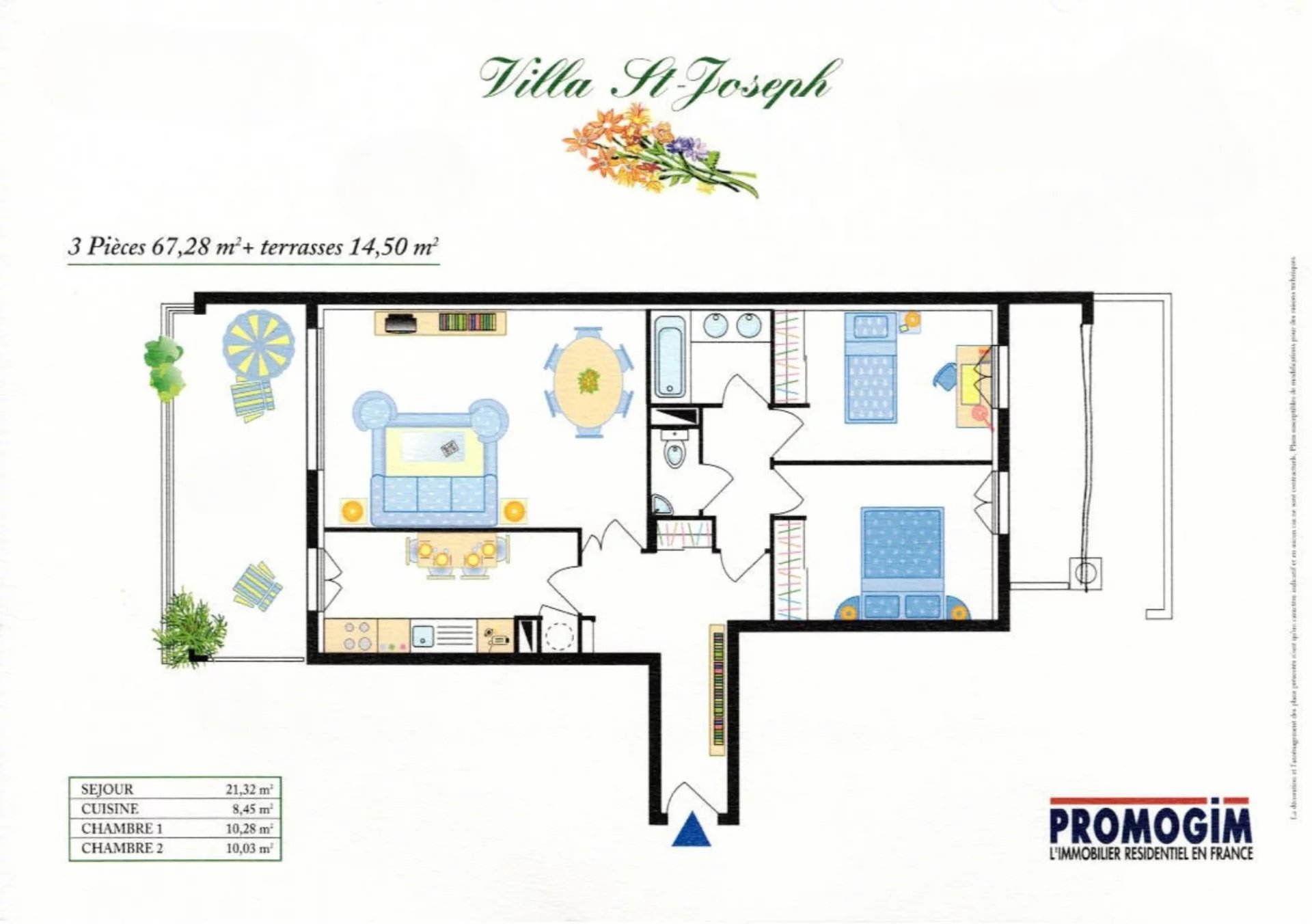 Au 4 ème étage d'une résidence de 2005, appartement 3 pièces de 67.32 m² bénéficiant d'une pièce à vivre de 30 m² ouvrant sur une terrasse au sud de 12 m², d'une entrée, de deux chambres sur balcon, d'une salle de douche et d'un wc séparé. Calme et lumineux. Possibilité d'acquérir un box fermé en sus.